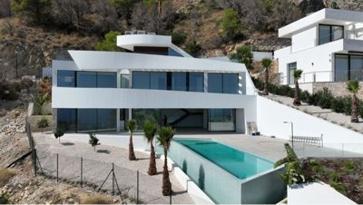 New luxury villa for sale in AlteaVilla with 4 bedrooms and 4 bathrooms is located in one of the most desired areas of Altea, combining cutting-edge technology, comfortable interiors, energy efficiency and materials that enhance light and spaces.VIlla with sea view stands in a privileged area of Altea, one of the most emblematic enclaves of the North Costa Blanca. The architecture, with modern and functional lines, strives to ensure that the spaces breathe and open up to the large terrace and the pool. Light, air, sea and vegetation to make it clear that the style adapts to the landscape and integrates into it.The house has been designed according to the standards of luxury and contemporary aesthetics, with open plan living, elegant lines and a restricted choice of colours based on natural, neutral and relaxing tones and materials, with the aim of awakening all the senses, creating security, emotional wellbeing and connection with nature through spaces and openings.It has a direct link with the motorway, 10 km from Benidorm, and just 50 km from Alicante airport and 100 km from Valencia. The picturesque coastal town of Altea allows us to have all the services and leisure of a big city and, at the same time, enjoy a viewpoint open to nature and the intense blue of the Mediterranean Sea, immersed in a natural environment, which also constitutes the perfect setting for a getaway, a relaxing vacation, or why not, be lucky and make it our home.