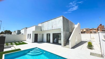 New built villas in Pilar de la Horadada, Pinar de Campoverde.New build villas located in Pinar de Campoverde, close to the town with great choice of restaurants, bars, supermarket and other local amenities. Villas have 3 bedrooms, 2 bathrooms, open concept kitchen, spacious living and dining area with large windows overlooking the garden.Outside you will have a nice garden area and solarium. Optional: private swimming pool.Pilar de la Horadada is a great place to live and spend a vacation, it is located in the extreme south of the province of Alicante. In the area you will find well-developed infrastructure, a wide variety of shops, restaurants, banks, schools, supermarkets, gyms, beauty salons, large shopping malls, golf courses, spas and plenty of leisure activities.