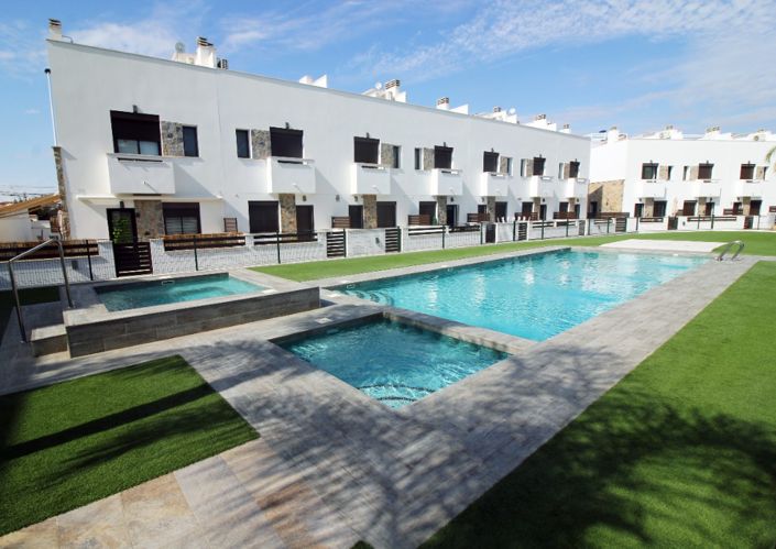 New build townhouse for sale in Pilar de la HoradadaThe residential complex consists of semi detached houses with 3 bedrooms, 2 bathrooms, spacious living-room, kitchen, solarium and terrace.The complex for sale has a swimming pool. All objects are made by modern standards, pre installation of central air conditioning system, furniture in bathrooms and kitchen.Pilar de la Horadada is situated only 10 minutes from the beach and with the best connections, both by road as well as by air. Located just 20km from Murcia and 60km from Alicante( Costa Blanca), it provides full services such as hospitals, schools, restaurants, shopping areas, golf courses.