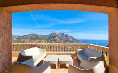 Nestled on the heights of Antheor, in a private and secure domain, this 10-room double villa is composed of two independent parts and offers a total surface area of 287 m². It has a beautiful plot of 1913 m² planted with Mediterranean species with an infinity pool plunging into the Mediterranean.