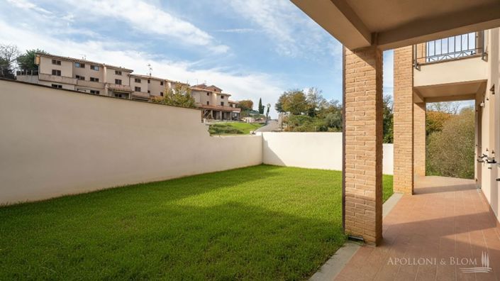 Privileged position, bright and spacious, fenced courtyard, elevator and garage options, for sale in Città della Pieve. Privileged position just a short walk from the historic centre, with shops, restaurants, and all amenities close at hand, 60-square-meter apartment featuring captivating open view over the gentle Umbrian countryside. The apartment is set on the ground floor of a brand new building with elevator and basement garages. It benefits a corner position and great light exposure, interiors are bright and well proportioned, making them perfectly suited as a primary residence, vacation home, or real estate investment. The entrance opens directly into a living room with an open kitchen and access to the porch and the spacious paved terrace, perfect for dining and relaxing. Indoor, a study/single bedroom, a bathroom, and a double bedroom served by a second panoramic terrace. Thoughtfully designed to combine comfort with practicality, self-contained, air-conditioned and high-quality finishes throughout. Private garages are also available for purchase with asking prices from 14.000 euro. Delivery is expected by spring 2026, presenting an appealing opportunity for those seeking a modern home in one of Umbria’s most authentic and enchanting settings. The apartment and the building can be fully viewed, book your visit today to directly appreciate the quality of construction and the tranquil, panoramic setting. The building offers other units for sale, 1 and 3-bedroom apartments with garden or terrace, contact us to discover all the opportunities still available! PROPERTY Ref: CDP3404_04Location: Città della Pieve, Province: Perugia, Region: UmbriaType: 97 sq m/1011 sq ft ground floor apartment with loggia and courtyard, corner position, newly built building with elevator and basement garagesYear of construction: 2025Conditions: on delivery - Spring 2026Porch/Loggia: porch in front of the living room measuring 6.9 sq m/74 sq ft , second porch measuring 5.8 sq m/63 sq ft Garden: approx. 50 sq m/535 sq ft enclosed by a low wall and wrought iron railingsParking: basement garages available with asking prices starting from euro 14.000Layout: Ground Floor: open-plan living room with kitchen and access to the porch and garden, hallway, 1 double bedroom with an outdoor access, 1 bathroom with window, 1 single bedroomDistance from services: 500 mtUtilities: Fixed telephone network: availableInternet: availableHeating: methaneWater: mains city supplyElectricity: availableWater waste: mains city connectionThe property is owned by a company. The location, for privacy, is approximate. Please note all measurements cited are approximateEnergy Efficiency Rating: CApolloni & Blom RE conducts technical due diligence with the owner's technician to have a full report on each property's urban and cadastral state of the art. The due diligence may be requested by clients showing a strong interest in the property