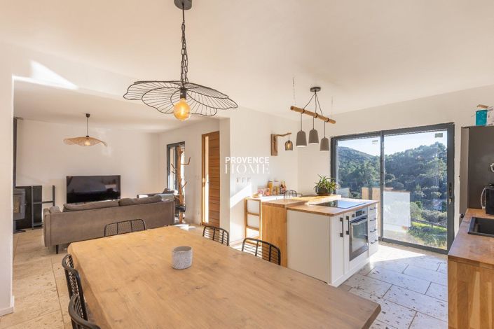 Provence Home, the Luberon real estate agency, is offering for sale, in a residential area of the village of Les Taillades, a single-storey villa built in 1968 and renovated in a contemporary style, set in a peaceful environment with elevated views over the Luberon, on an enclosed hillside plot of approx. 1,855 sqm.