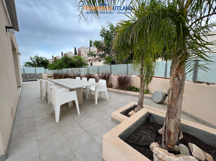We are really pleased to present this recently build Luxury Seaside villa located just a couple minuets walk to the fantastic sandy beaches of Mil Palmeras, built to a high modern standard built on 2 levels plus a large solarium and various terrace spaces with sea views. As you enter the property you are greeted by the beautiful floating wooden and glass staircase and fantastic modern family kitchen. The open plan living room dining area is really inviting with large floor to ceiling windows and doors which open up to a beautiful low maintenance south facing terrace for entertaining and pool area. On this level you will also find a double bedroom with direct access to terrace space and wardrobe, full bathroom and a large equipped laundry room with storage. On the next level we find 2 en suite master bedrooms with wardrobes, a large south facing terrace with stairs up to the solarium with open views of the sea and surrounding area. This special sea side property is situated on the corner with privacy wall, off street parking and in a great location!