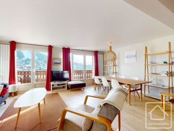 The Grands Vans apartment is a stunning fully renovated duplex, sold furnished, nestled in the centre of Les Carroz ski resort, just 500 metres from the gondola.