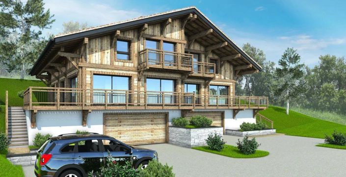In the heart of the village of Combloux and all amenities. Sale of a new semi-detached chalet with a renowned local builder with a total surface area of approximately 170 Sqm This chalet has 5 bedrooms, you can customize or modify the interior layout with the renowned regional builder. File on request with the possibility of customising the chalet with the builder.