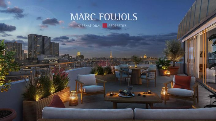 This 5-room duplex apartment is located on the 9th and 10th floors. South-Facing, it benefits from dual exposure and offers a panoramic view over Paris from its terrace.