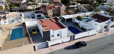 Discover a beautifully renovated, contemporary detached villa located in the residential heart of Ciudad Quesada, Rojales. This stylish home combines modern design with comfortable living spaces across two levels, set on a generous plot of approximately 500 m². The property is ideal for families seeking spacious accommodation or as a desirable holiday residence.