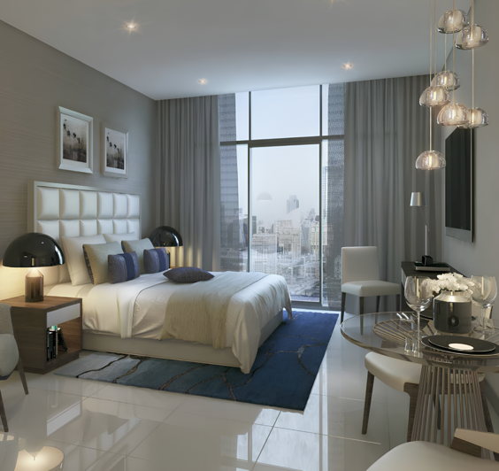 The apartments are situated in the heart of the Burj district, within the “platinum square kilometer,” and are managed by DAMAC Maison Hotels & Resorts. The prime location allows residents to reach The Dubai Mall and Burj Khalifa in 9 minutes, Jumeirah Beach in 9 minutes, and Dubai International Airport in 15 minutes.