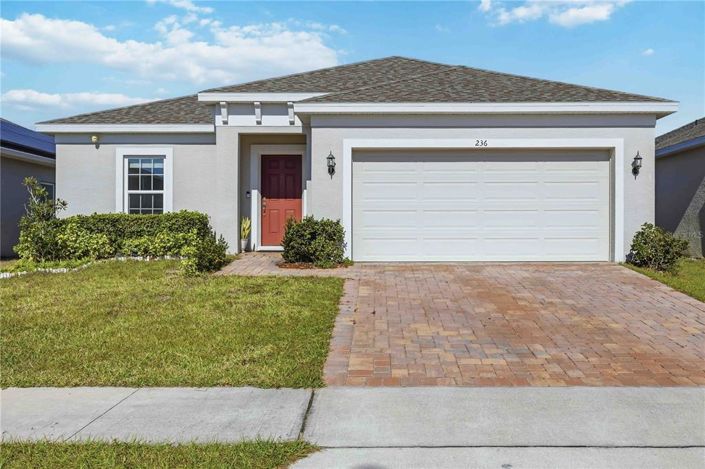 feels virtually untouched. The primary suite offers a walking closet, QUARTZ counter top with DUAL VANITIES, and an elegant glass-enclosed walk-in shower. The secondary bathroom also features a QUARTZ counter top with double sink. Interior laundry room, with modern WASHER AND DRYER, a WHOLE HOUSE PURIFICATION SYSTEM, and premium upgrades throughout. This turnkey property is exceptionally clean, FULLY EQUIPED, and truly MOVE IN READY, SIMPLY BRING YOUR PERSONAL BELONGINGS. Exterior features include spacious covered screened lanai, brick paver driveway and back yard, upgraded landscape package with FULL IRRIGATION. This Community offers amenities such as a dog park, walking path, playground, and sidewalks with access to a RESORT STYLE SWIMMING POOL. Orchid Terrace is close to everything! Just 2 minutes from US 27, 10 minutes from I-4, short distance from Posner Park shopping area, Hospitals, Walmart, new Sam's Supercenter and 25 minutes to Disney! A rare opportunity to own a modern, FULLY FURNISHED home in IMMACULATE condition, ready for IMMEDIATE enjoyment. Please call today for a showing!