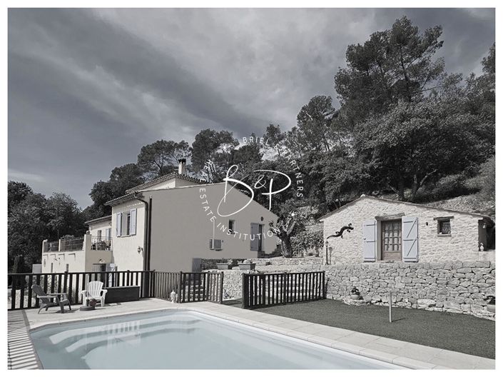 In the heart of a preserved environment, this charming house combines authenticity and a relaxed lifestyle. Set in a landscaped garden of over 3,000 sqm, it offers breathtaking views of the Var countryside, amidst majestic olive trees, dry-stone terraces, and Mediterranean plants. Designed to take full advantage of the light and panoramic views, the house opens onto a vast south-facing terrace. The cozy living room, featuring a fireplace insert, is integrated into a functional open-plan kitchen. Two comfortable bedrooms, a bathroom, and a laundry room complete this level. Upstairs, a spacious master suite offers an intimate cocoon with its private bathroom and separate toilet. For guests to enjoy in complete serenity, a bedroom with a separate entrance and private bathroom is available. Outside, there's plenty to relax in: a saltwater pool perfectly integrated into this natural setting invites you to swim, while a converted stone cabin, a separate chalet, a cellar, and a garage complete the amenities. A unique setting, a peaceful atmosphere, and undeniable charm... Let yourself be seduced by this villa where every detail tells the story of Provence. Come discover it!