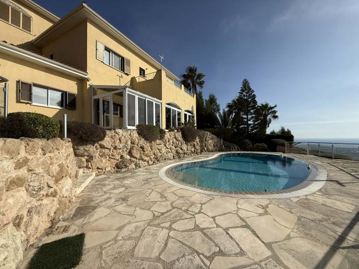 Outside the garden is private and fully enclosed and offers the most amazing unobstructed views along the Paphos coastline, with beautiful landscaped gardens and boasts a private tiled swimming pool with Roman steps, surrounded by a large patio area with glass balustrades, covered outside kitchen/BBQ area next to a spacious patio area overlooking the private swimming pool, the perfect place to entertain family and friends. There is also a double garage with electric doors and private driveway.