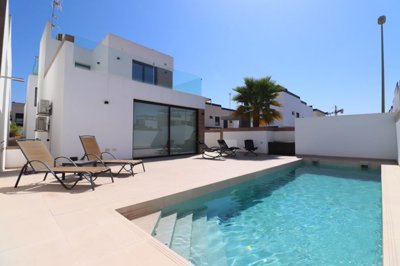 This Corner, Modern & Stylish, As New As, Three Bedroom Detached Villa in Benijofar is located in the heart of this bustling and traditional Spanish town, between Ciudad Quesada and Rojales. Situated within a few minutes walk of many of the amenities and facilities on offer, with everything you could possibly need, whilst the nearest beaches and sea fronts are only a 12 minute drive away at Guardamar del Segura. This property built in 2022, comprises on the ground floor of an open plan fully fitted kitchen with breakfast bar; living/dining room with access out to the front, tiled, beautiful, low maintenance garden with off road parking & private swimming pool; one double bedroom; and a family shower room; on the first floor there are a further two double bedrooms, the master with access out to the large terrace, as well as the landing; and a second shower room, with Juliette access. Internal stairs lead down to the extremely spacious and included under build with lots of possibilities for additional storage, living accommodation, games room, cinema room, etc..., already benefiting from a installations & utility room. Many extras are to include fitted wardrobes, air conditioning throughout, electric blinds, aerothermic system, private pool, parking, motorized gate, internal and external lighting, finished under build, white goods and a super cool finished product. Simply Amazing, available at €440.000! 48 hours notice required for viewings.