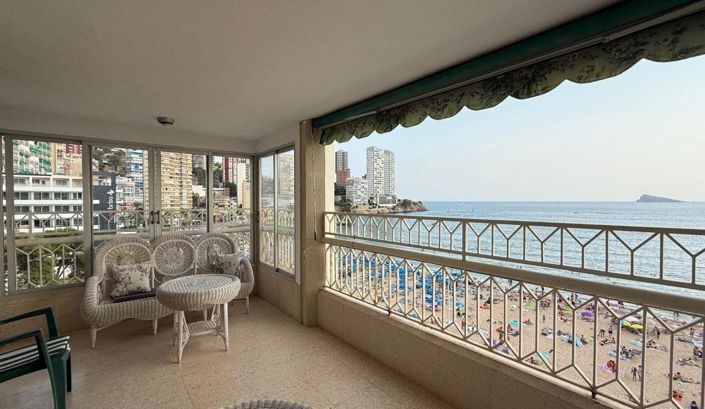 Discover this spectacular apartment located in an unbeatable location, right on the famous Levante Beach. With a generous floor space of 160 m², this property has three spacious bedrooms and two full bathrooms, with the master bedroom being a suite for greater privacy and comfort. Enjoy the Mediterranean sun from its large corner terrace offering panoramic views of the sea and the vibrant Benidorm promenade. The living-dining room is ideal for relaxing or entertaining while contemplating the coastal landscape. The kitchen is fully equipped and includes a functional laundry room that maximizes the use of available space. This attractive property is complemented by access to a communal garage within a beautiful urbanization equipped with a refreshing swimming pool and solarium where you can enjoy unforgettable moments under the Spanish sun; there are also sun loungers available for your personal comfort on sunny days. Its privileged location allows you to easily access all the necessary services: restaurants, shops, and recreational activities without the need for long journeys.