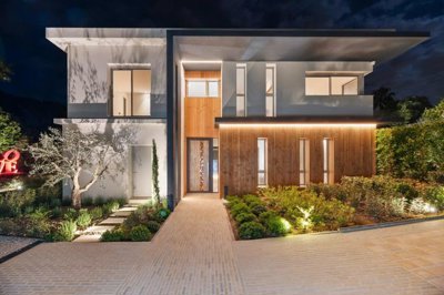 Located in a gated, secure estate close to international schools and the Cannes golf course, this villa features a contemporary design that blends seamlessly into the natural environment.