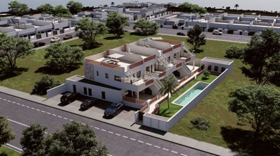 Located in the charming municipality of Pilar de la Horadada, this residential complex offers a selection of high and low bungalows, designed to meet the needs of those seeking a comfortable and modern home. With a total of 8 properties, each is equipped with features that guarantee a quality living experience. The location is ideal for those who wish to enjoy tranquility without being too far from urban conveniences. Additionally, the proximity to the sea, just 4 km away, allows for the enjoyment of sea breezes and sunny days at the beach. The nearest airport is 44 km away, facilitating access for frequent travelers.OUTDOOR AREASThe exteriors of these properties are designed to maximize enjoyment of the Mediterranean climate. Each bungalow features a private garden, perfect for creating a personal green space or enjoying outdoor moments. The spacious terraces offer an ideal place to relax or share with friends and family, while the solarium provides additional space for sunbathing or enjoying the views. The community also features common garden areas, adding a touch of nature and freshness to the environment.INDOOR AREASThe interior of the bungalows is designed with a focus on functionality and comfort. Featuring a layout that includes 3 bedrooms and 2 bathrooms, each space is optimized to offer comfort and privacy. Porcelain tile floors add a modern touch and are easy to maintain. The properties are equipped with high-quality appliances, air conditioning to ensure thermal comfort year-round, and built-in wardrobes that offer efficient and discreet storage. These elements make each home practical and welcoming, ideal for daily living.COMMON AREASResidents can enjoy a range of community amenities that enhance the living experience in this residential complex. A community pool offers a refreshing place to swim and relax during warm summer days. The common garden areas provide a green and tranquil environment, perfect for walking or simply enjoying the outdoors. Additionally, the community parking ensures residents have a safe and convenient place for their vehicles.PILAR DE LA HORADADAPilar de la Horadada, on the Costa Blanca, is a coastal town with fine sandy beaches and a tranquil atmosphere. Its coastline, such as Playa de Mil Palmeras, attracts visitors in search of sun and sea, making it a popular tourist destination in summer. Tourism in Pilar de la Horadada focuses on its beaches and water activities, such as snorkelling and scuba diving. Its proximity to areas of interest such as the Salinas de San Pedro Natural Park adds value to its tourist offer. The lifestyle in Pilar de la Horadada is relaxed and sea-oriented. Residents enjoy a quiet life, with a wide gastronomic offer based on fresh fish and Mediterranean dishes. The community values the proximity to the sea and local traditions. Pilar de la Horadada offers a coastal and tranquil atmosphere for those seeking a relaxed life by the Mediterranean Sea on the Costa Blanca.