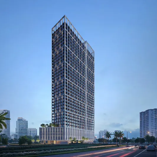 Binghatti Titania is an architectural landmark in the heart of the Majan community, reflecting the bold style and technical excellence of Binghatti. The building includes three basement levels, a ground floor, four podium levels, thirty-two residential floors, a technical level, and a roof. The elegant tower, with its expressive façade illuminated by vertical lines, combines modern aesthetics with everyday comfort. The architectural concept of Binghatti Titania is defined by geometric precision and minimalist forms. The tower embodies a forward-looking approach to design, where every element supports the harmony between visual impact and functionality.