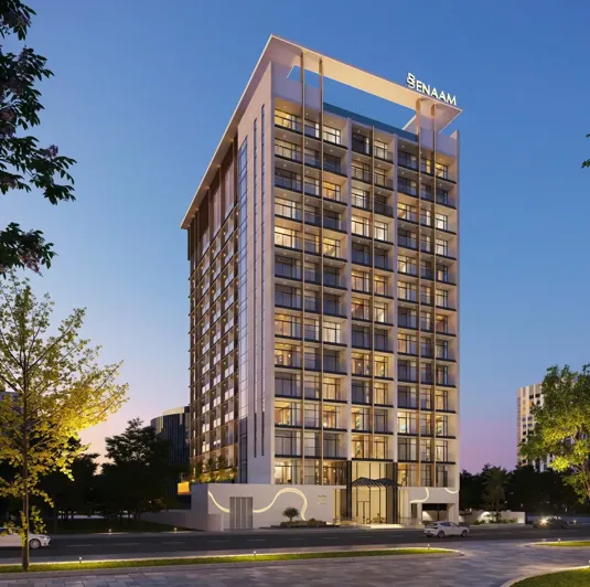 Azra Residence is a contemporary project by Enaam, located in the Dubailand area. The building comprises a basement level, a ground floor, thirteen residential floors, and a rooftop.