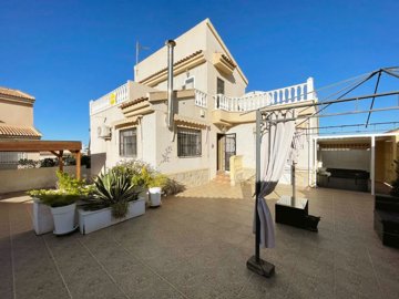This spacious and well presented, South-facing, three bedroom, two bathroom, detached corner plot villa is located in the popular Rojales Hills area of Ciudad Quesada/Benimar on the Costa Blanca South. Situated between the thriving towns of Rojales & Ciudad Quesada and within a 5 minute drive or 15/20 minute walk down to the popular Benimar commercial centres where you will find a great choice of; bars, restaurants, supermarkets. The popular Ciudad Quesada high street with its fantastic choice of amenities is just a 5 minute drive away. Also close by you have the stunning blue flag sandy beaches of Guardamar del Segura along with several great golf courses such as La Marquesa and La Finca plus the Roajles family Aqua Park.