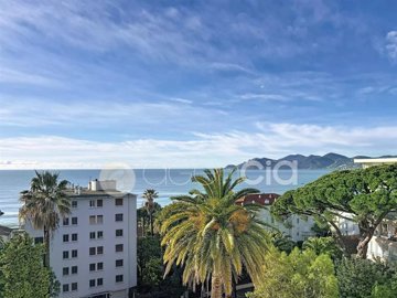 Cannes, close to the Midi beaches. In a building dating from 1870 with exceptional bourgeois charm, offering elegant architecture and rare cachet, equipped with an elevator for comfort. Top floor apartment with panoramic sea view. This two-bedroom apartment with its generous volumes and remarkable ceiling height is very bright thanks to its southern exposure. Easy parking thanks to communal parking lot. Cellar.