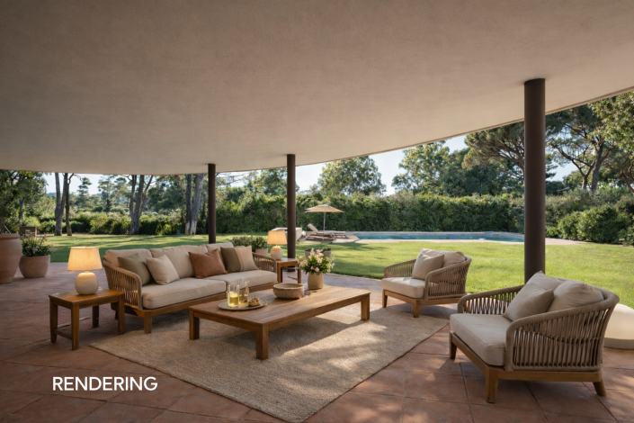 The property, of approximately 470 square metres, is surrounded by a magnificent 5,800 square metre garden that guarantees absolute privacy and a perfect balance between architecture and nature.