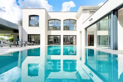 Toulouse, 8' walk from the Gramont metro station, Hollywood villa. On the ground floor, masterful living room of 10m long with cathedral ceiling, with solid parquet flooring, heated floor and city gas fireplace from 2019, contemporary kitchen, office, laundry room and TV room with adjoining bathroom. Extension of 2019 (61 m² + 15 m² of annexes: technical room and outdoor sanitary facilities). The sleeping area includes five bedrooms, including a master suite with private bathroom (whirlpool bath, shower, dressing room and toilet). 3 other bedrooms share a shared bathroom with bathtub. Au Ssol (92 m²): additional bedroom with dressing room, bathroom and toilet, air-conditioned wine cellar, and multipurpose room of 50 m².