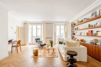 Exclusive to Île Saint Louis. Quiet and out of sight. On the second floor with elevator of a Haussmannian building, apartment of about 80 m² with balconies completely redesigned by architect. Double reception room, large separate dining kitchen. Two bedrooms. High quality renovation, charm of the old preserved, contemporary comfort perfectly integrated. Address sought. A stone's throw from schools and shops.