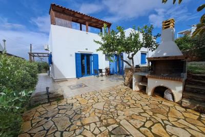 This is a detached 3 bedroom bungalow with garden, roof terrace and sea views. It is a lovely little property, set in a quiet cul de sac is within walking distance from the village. With rounded smooth corners, crisp white walls and Aegean blue shutters it is the image of a true home in Greece, perfect for an easy maintenance but comfortable home.