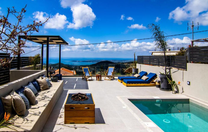 In the picturesque village of Dilinata, situated in one of Kefalonia's most privileged locations, an impressive modern villa is for sale, seamlessly blending absolute luxury with authentic Ionian beauty. This 150 sq.m. property features bright and comfortable living spaces, including three spacious bedrooms, three bathrooms, two living rooms, and two fully equipped kitchens, offering exceptional flexibility and autonomy. The outdoor area is meticulously designed for relaxation and entertainment, boasting a private swimming pool, a Jacuzzi, elegant seating areas, and an outdoor dining space, all complemented by sun loungers with breathtaking views. From the villa's expansive balconies, residents can enjoy a rare panoramic vista of the entire gulf and the crystal-clear waters of the Ionian Sea, while the sunsets over Lixouri provide a unique daily spectacle. The strategic location in Dilinata ensures absolute tranquility while maintaining direct access to amenities, as it is just a 15-minute drive from the capital, Argostoli, and 18 km from the island's international airport. Along the scenic route to town, one can find some of the region's finest traditional tavernas. This property represents a rare investment opportunity, ideal for either a permanent residence or a high-end holiday rental.
