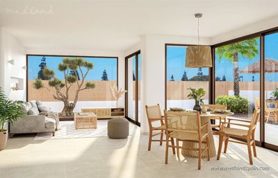 New apartment and villa complex, only 500 metres from the beach within La Serena Golf Resort in Los Alcázares. Set in one of the most sought-after golf and beach resorts on the Costa Cálida, the project enjoys a privileged location beside an 18-hole golf course and just a short walk from the Mar Menor coastline. The resort offers a clubhouse, golf shop and restaurant, while the town centre of Los Alcázares provides a full range of everyday amenities including supermarkets, restaurants, bars, shops and a medical centre. The nearby marina and beaches offer a wide choice of water sports and leisure activities, and the surrounding area is ideal for walking and cycling. Murcia Airport can be reached in around 30 minutes by car, and Alicante Airport in just over an hour.The new phase of the project introduces a fresh residential layout comprising modern apartment blocks of three floors, one exclusive block of only two floors, as well as a detached villa on one level with solarium. The apartments are available with 2 or 3 bedrooms and 2 bathrooms, including penthouses with private solarium and ground-floor homes with very spacious terraces. The villa is arranged on one level, with all three bedrooms on the main floor and a private rooftop solarium.All homes are designed around bright open-plan living spaces that combine the lounge, dining area and kitchen, opening directly onto generous terraces. Master bedrooms include en-suite bathrooms, and selected homes enjoy open views towards the surrounding area and the nearby coastline. Each home includes pre-installation for ducted air conditioning, fitted wardrobes, electric blinds in the bedrooms, indoor and outdoor lighting, as well as a private parking space and storage unit in the underground parking garage.The residential complex is completed with a large communal swimming pool, landscaped relaxation areas with sun loungers, showers and toilets, creating an ideal setting for enjoying the Mediterranean climate year-round.An excellent opportunity to own a contemporary home just steps from the beach in one of the most attractive golf resorts on the Costa Cálida.