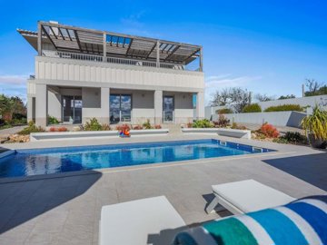 The property sits on a generous 2,703 m² plot and offers approximately 332 m² of built area with pool, garage and terraces, arranged across two levels and connected by a private lift, making the layout both practical and future-proof. Natural light fills the interiors, and the connection between indoor and outdoor spaces is seamless throughout.