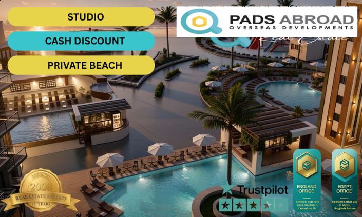 This is one of the lowest entry prices for a beachfront private-beach project in Hurghada, making it especially attractive for holiday rentals and long-term investment.