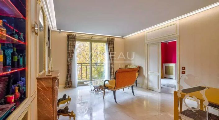 Located in the 8th arrondissement of Paris, in the heart of the Golden Triangle, on the prestigious Avenue Montaigne, opposite the Plaza Athénée hotel, this apartment boasts an emblematic location, within easy reach of the main Parisian thoroughfares and the district's most sought-after addresses. It is located on the 2nd floor of a luxury building with elegant architecture, well-maintained common areas, a janitor and concierge service providing 24/24 security. With 89 m² of floor space, this bright, quiet, walk-through apartment is in perfect condition. Its layout, organized in a suite, offers a fluid and functional distribution including an entrance hall, a living room, a vast bedroom with its own bathroom with balneotherapy bathtub and toilet, a separate fully-equipped kitchen, a dressing room and a separate toilet. The property benefits from quality features such as marble flooring, a fireplace, air conditioning, gold-leaf walls, triple-glazed reinforced insulation, two armored doors, a remote surveillance system and a Bose audio system with independent speakers in each room. A rare property for its address, the quality of its building and its level of services, in one of the capital's most sought-after sectors.