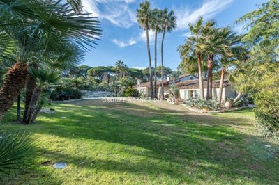 Ideally located in the heart of Valescure's most sought-after area, within a private and fully secured residential estate, and within walking distance of golf courses, this sumptuous stone property, inspired by the Luberon region, embodies a rare art of living, blending Provençal elegance with prestigious amenities. Comprising nine rooms, the villa immediately captivates with its authentic charm, the exceptional quality of its features, and its magnificent landscaped garden, richly planted with palm trees and Mediterranean species, offering an intimate and secluded living environment. Built on approximately 3,000 sqm of meticulously maintained landscaped grounds, this exceptional property harmoniously combines refinement, comfort, and generous proportions. The reception areas include a double living room with a dining area and a lounge featuring a fireplace, as well as a light-filled winter lounge. The sleeping quarters offer four suites with bathrooms, including a remarkable master suite opening onto a private terrace, as well as an office that could serve as a fifth bedroom. The villa also boasts a fully equipped kitchen of the highest standard, a fitted laundry room, a pantry, a wine cellar, a cigar humidor, a games room, and a private home cinema with a bar, all dedicated to comfort and leisure. The exterior, perfectly designed for relaxation and conviviality, features a heated swimming pool (11 x 5.5 m), a jacuzzi, and a sauna, all in a completely private setting. A large garage accommodating up to five vehicles, a bicycle garage, and several outdoor parking spaces complete the amenities. The property benefits from a video surveillance system ensuring optimal security. The use of fine materials, impeccable finishes, and high-quality workmanship by skilled artisans gives this property a truly exclusive character. A rare find on the market, ideal for clients seeking excellence and discretion.