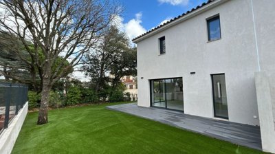 For sale, Six-Fours-les-Plages (83140) between Le Brusc and the town center, newly built T4 house of about 100 m² of living space. It comprises an entrance, a living room with open-plan kitchen (unfurnished and equipped), all opening onto the garden and terrace, a laundry room, three bedrooms with fitted wardrobes, a shower room and two toilets. Property under the condominium regime, 2 lots for habitation. Condominium of 2 lots - including 2 habitation lots. Annual charges: 300.00 euros.