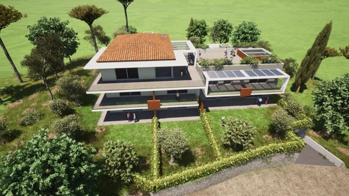 Bright 56 sqm living area opening onto a 63.50 sqm terrace and a 260 sqm private garden.