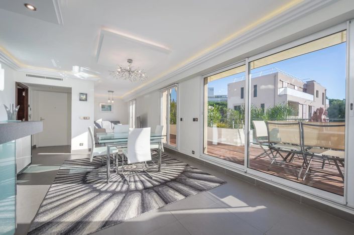In the heart of Juan-les-Pins, on the top floor of 3, this magnificent 3-room apartment was entirely renovated with refinement in 2025.