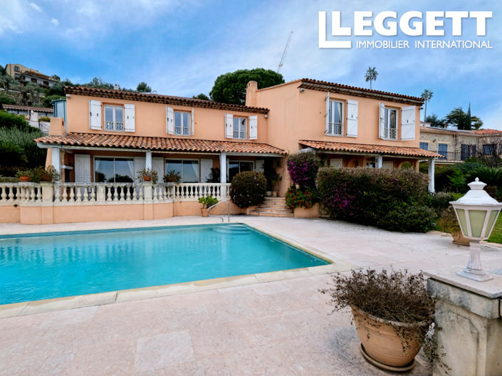 Located within a private estate just minutes from both Cannes and Antibes, this elegant Mediterranean villa enjoys sweeping panoramic sea views and an unusually flat, landscaped plot of 1,679 sqm - a rare feature in this area.