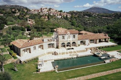 This stunning stone property is located on the countryside hilltops overlooking Cannes and its dazzling beaches. The spacious private grounds and landscaped gardens with a 24 meter swimming pool and ample terraces offer an invaluable amount of privacy whilst remaining within walking distance of the historic village of Chateauneuf.