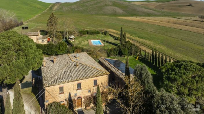 Authentic hunting lodge, historic features, guest house, air conditioning, electric car station, white truffle reserve, for sale south of Siena. Prime setting, just ten minutes south of Siena, in the heart of the Val d’Arbia and within easy reach of the Crete Senesi, Montalcino and the Val d’Orcia, this distinguished mid-18th-century country residence stands in a private yet convenient position, moments from local shops and amenities. Formerly the hunting lodge of a noble Sienese family, the estate enjoys views across the Tuscan countryside, framed by cypress avenues and Mediterranean planting. Extending to approximately 800 sq m (8611 sq ft), it features a casale arranged around an internal courtyard paved in natural stone, paired with a graceful three-arched former barn, and a two-story guest cottage. The casale ground floor retains magnificent vaulted terracotta ceilings, while the upper level is characterised by exposed timber beams. The accommodation is presently configured as five independent apartments within the main house, each offering one or two bedrooms, complemented by a charming two-storey guest cottage with a further two bedrooms. In addition, ancillary living areas and a traditional bread oven. The estate holds an agriturismo licence for 20 guests and benefits from an established international clientele with a weekly renting rate of 12.000 USD. The property is equipped with a 20 kW photovoltaic system providing sustainable energy and hot water production, alongside air conditioning, and an electric vehicle charging station. A panoramic heated swimming pool with jacuzzi, sun terraces and a volleyball court complete the leisure amenities. Of particular distinction is the private white truffle reserve within the woodland. The landscaped grounds extend to 4 hectares (10 acres), comprising formal gardens, pasture, woodland, and organically cultivated arable land. An estate of notable heritage and environmental sensitivity, combining renewable energy, agricultural potential and refined hospitality, all within immediate proximity to one of Tuscany’s most celebrated cultural centres. PROPERTY Ref: SIE3554Location: Val d'Arbia, Province: Siena, Region: TuscanyType: 570 sq m/6135 sq ft two-story 18th-century country house over a typical inner courtyard, solar panels, heated swimming pool, volleyball court, paired with a 83 sq m/893 sq ft two-bedroom guest house, a 115 sq m/1237 sq ft former barn, and 4 hectares/10 acres land including a white truffle reserveYear of construction: 1750Year of renovation: 2000 and 2023Condition: excellentLand: 4 hectares/10 acres consisting of 2460 sq mt/0.6 acres of garden, 3.6 ha/9 acres of arable land with organic production, 880 sq mt/0.2 acres of pasture land, and 0.67 ha/1.6 acres of woodland with a white truffle reserveSwimming Pool: 12x5 mt heated pool featuring a solar shower and a shaded area sundeck, an underground technical room with a heat pumpParking: 8 shaded parking seatsLayout: