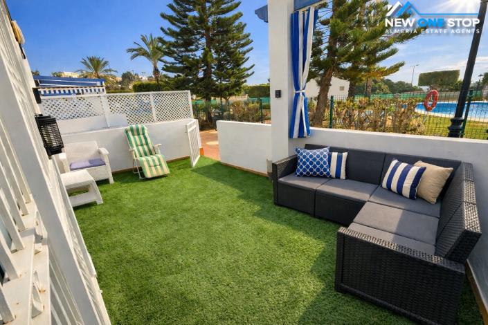 Nestled in the charming coastal town of Mojacar this stunning 93m2 ground floor apartment on a secure gated community, offers a blend of comfort and modern style.