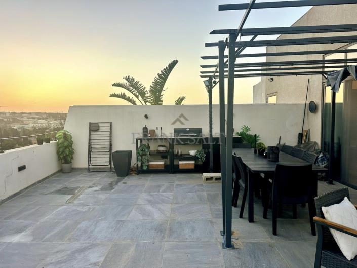 Exceptional and truly unique modern corner Penthouse, including its overlying roof and airspace, ideally positioned fronting three streets and offering an impressive 130sqm+ of outdoor entertaining space. Tastefully finished throughout, this bright and airy property features a spacious open plan kitchen, living and dining area with direct access to a massive wrap-around terrace – perfect for entertaining. The layout also comprises a main bathroom, a box/washroom, a large master bedroom complete with ensuite and walk-in wardrobe, as well as a spare bedroom. This rare penthouse combines indoor comfort with outstanding outdoor living, making it an ideal home or investment. A one-car garage is also available for an extra €55,000.