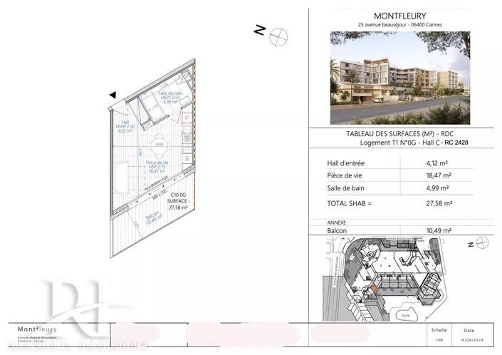 The Résidence Montfleury offers this 27.58 m² studio apartment as part of 69 apartments ranging from studios to three-bedroom flats.