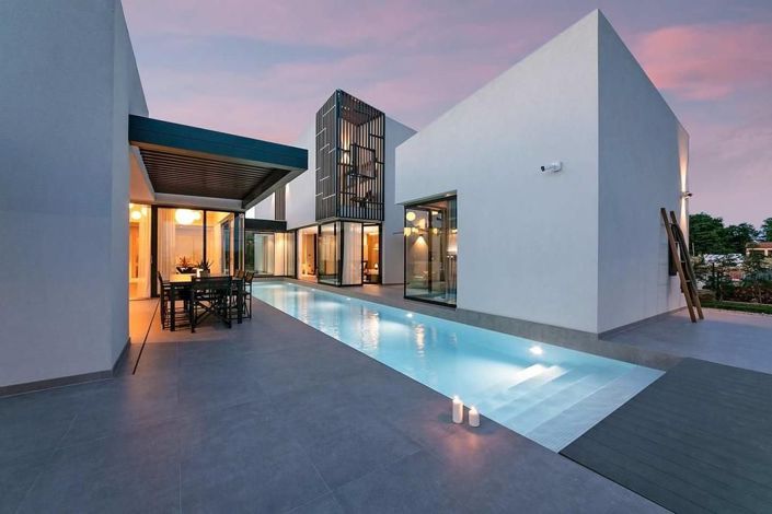 One of the most distinctive modern luxury villas in Istria is located in the charming village of Kaštelir, approximately 10 km from the historic coastal city of Porec. This exceptional property stands out for its superior architecture and innovative design concept that immediately captivates at first sight. The villa is composed of five separate architectural units connected by elegant corridors, creating a unique layout that combines privacy with fluid living spaces. At the center of the complex lies a stunning outdoor swimming pool, which transitions into a whirlpool area at the rear, forming the visual and functional heart of the residence.The villa extends across approximately 280 square meters of living space and offers a total of four spacious bedrooms, four modern bathrooms, and an additional guest toilet. The ground floor includes a contemporary kitchen, an elegant dining area, and a bright living room with a fireplace, designed as an inviting space for relaxation and social gatherings. Two comfortable bedrooms with private en-suite bathrooms are also located on this level. The upper floor accommodates the remaining two bedrooms and two bathrooms, ensuring privacy and comfort for family members or guests.The interior layout has been carefully planned to create harmony between the individual units while maintaining a strong architectural identity. Large glazed surfaces allow natural light to flow throughout the spaces, while terraces, pergolas, and carefully designed outdoor zones create a dynamic interplay of light, shade, and reflections from the water elements. This thoughtful design approach provides a unique living atmosphere where indoor and outdoor spaces blend seamlessly, emphasizing the Mediterranean lifestyle that makes Istria so desirable.In addition to its striking architecture, the villa offers a private wellness area designed for complete relaxation. The wellness zone includes both a Finnish sauna and a Turkish sauna, as well as an indoor jacuzzi, creating a luxurious spa-like environment within the comfort of the home. The landscaped garden is fully fenced and designed to ensure privacy, while the sun deck around the pool provides an ideal place for enjoying the warm Istrian climate.The property is equipped with high-quality materials and modern technical solutions, including video surveillance for additional security. The spacious land plot of 933 square meters provides three private parking spaces and plenty of outdoor space for relaxation and entertainment. The elevated position of the villa offers a beautiful panoramic sea view, further enhancing the exclusive character of the property.This remarkable villa near Kaštelir represents a rare opportunity to own a truly unique modern residence in one of the most sought-after locations in Istria. With its innovative architectural concept, luxury wellness facilities, panoramic views, and proximity to the Adriatic coast and the historic town of Porec, the property is ideal as a prestigious private residence or as a high-end investment for luxury holiday rentals in the Mediterranean. Ref: RE-U-45943Overall additional expenses borne by the Buyer of real estate in Croatia are around 7% of property cost in total, which includes: property transfer tax (3% of property value), agency/brokerage commission (3%+VAT on commission), advocate fee (cca 1%), notary fee, court registration fee and official certified translation expenses. Agency/brokerage agreement is signed prior to visiting properties.Property advantages: Swimming pool, Spa, Sauna, Garden, Modern