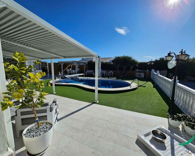For sale is a beautiful detached villa in the sought-after area of La Marina. Offering 142 m2 of internal space, this resale property blends comfort and style across its spacious layout. With four good-sized bedrooms and four bathrooms (3 of which are en-suite), it provides ample room for family living or for guests.
