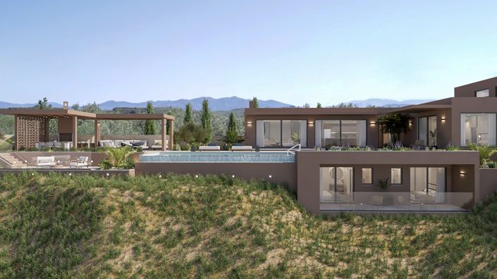 A true landmark of high aesthetic, privacy and breathtaking vistas to the endless blue, nestled among Crete's endless olive groves.As the site has unobstructed views to the sea, the intention is to create a residence which maximises the visual connection to the sea. Along the whole villa, towards the north, stretches the open-air landscaped area, divided into two levels. In front of the common areas is the covered outdoor seating area and the swimming pool; canopies offer protection from sun during the summer.The villa's interior areas are L-shaped, literally embracing the outdoor area as a central point. It's also taking the pool experience to a whole new level. Enjoy the panorama while seated at the specially designed outdoor lounges or catch the sun on the wooden deck.The living areas are designed and developed along the view line, making full use of its potential. Large openings allow natural light to penetrate the interior, adding thermal efficiency during the winter period. The domination of earthy tones and its combination with contemporary materials highlight the form and the simplicity of the design.The villa covers a total of 229 sqm, on a plot of 983 sqm. It enjoys an open plan kitchen with high-end finishes and a stylish bar-stand which becomes the focal point. This area connects seamlessly with the dining area and the living room. This level is also flanked by an en-suite bedroom, oriented towards east. A stairway links the two levels. Downstairs, there are two secluded bedrooms with fitted wardrobes and en-suite bathrooms as well as a storeroom. Both bedrooms lead out to a shared verandah with breathtaking views to the coastline of Platanias and the Mediterranean Sea.A sleek wooden carport provides shelter for two cars and a nicely done pathway serves the accessibility to the villa.DeveloperThe developer is a refined architectural & construction company with offices in Athens and Crete, founded in 2006. A transdisciplinary group of visionary architects, designers and engineers, creating prominent spaces which are tailored to the needs of the people as well as the land and the setting concerned.Their office delivers projects from concept to design and construction, focusing on a diverse range of work and scale. They stand out for their high quality and aesthetic excellence, as they perfectly blend tradition with modern trends in architecture, and new building techniques with the principles of bioclimatic design.For all those years, the driving force behind its success, is their vision: "Innovative ideas and diverse solutions, delivered always with professionalism and the clients in the spotlight". With a high sense of responsibility and consistency, they aspire to change the standards in the field of construction.RentalRenting a villa like this, on Greece’s largest and most accessible island, can offer high returns and is a popular choice among many owners. You can benefit from sophisticated and professional management of the home without having to worry about it yourself. From start to finish, the rental of the home is handled by the developer's own property and rental management service. Owners are fully informed of management decisions and options every step of the way, allowing them to maximize the value of their investment hassle-free. The villa can pay for itself allowing owners to then enjoy the ultimate holiday destination year-round when they choose to and for as long as they like.LocationThe villa enjoys a privileged location surrounded by endless olive trees and vineyards. The village of Xamoudochori lies 20 km west of Chania, on a plateau at 110 m. above sea level. Stunning views towards the northern coastline of Crete and the endless blue of the Aegean Sea, as well as to the White Mountains to the south.A perfect base to explore western Crete, a “repertoire” of numerous pebbly and sandy beaches, archeological sights and stunning nature. Refresh yourself away from the crowds while you enjoy the livelier, more cosmopolitan lifestyles of Platanias and Maleme whenever you want.Platanias - The famous beach resort of Platanias is just a 10-minute drive. The old village is built on a hillside with fantastic view of the sea. The beach of Platanias is a lovely long beach where you can find everything that is provided on well organised beaches, as beach bars, sun beds, watersports etc. On the east side of the local harbor, close to Agia Marina, you can enjoy swimming in the several small artificial coves. During summer nights, there is a wide gamut of bars and night clubs if you want to go the extra mile.Maleme - The beach of Maleme is just a 5-minutes drive. It's part of the continuous beach of 16 kms from Chania city to Kolymbari village. An ideal place for sun tanning, relaxing and romantic evenings watching the sunset. A blue-flag award winner. Parts of the beach are organised but there also quieter parts where you can enjoy the sea in serenity. Moreover, there are many sea view restaurants, tavernas and bars to taste some local treats.Chania town is just a 20-minute drive and the airport is 40 minutes away. There is easy access to the National Road which is only about a 10 minutes drive.Crete, and especially the Chania area, is famous for its exotic places, cultural cradles (especially in the Old Town) and Cretan cuisine. The Cretan folk tradition is often imprinted on the local art (weaving, pottery, wood carving, etc.) and on the artistic expression of the locals in general.The most famous natural landmarks are the White Mountains and the Samaria Gorge, as well as the coastal and mountain villages.