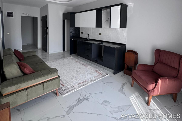This 2+1 apartment, 80 m², is available in Oba, located on the ground floor of a residential complex. This convenient layout includes a living room with kitchen, two bedrooms, a bathroom, and a balcony, making it ideal for residential use, vacation rentals, or investment.