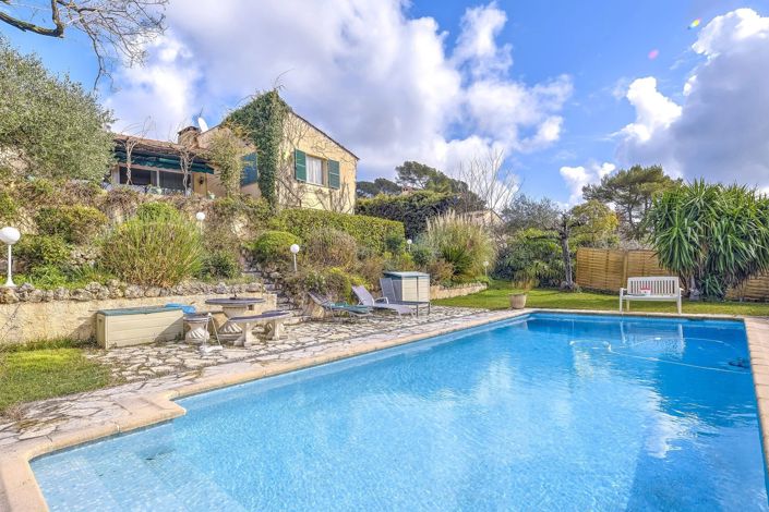 Located in the heart of the highly sought-after Domaine Saint Basile, in a particularly quiet, residential setting, this charming 60's villa enjoys a pleasant, unobstructed view of the Massif de l'Estérel and the old village of Mougins, with a glimpse of the sea.