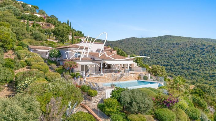 Exclusive To Agnes Malecki Agency - Splendid Sea View for this Very High-End Property Very Bright With Its South Facing and above all very well Built (2001) with high quality materials. Fully air-conditioned villa of approximately 239m2 built on fully landscaped land of 1187m2 which offers on the ground floor: entrance hall with spacious living room in a row of approximately 50m2, fully equipped kitchen with its pantry all opening onto a terrace. Master bedroom opening onto a terrace with bathroom, suspended toilet, dressing room - Interior patio with fountain - Upstairs: Storage room, toilet, 02 bedrooms with shower rooms, solarium. Finished basement with a very large room, pantry, crawl space, boiler room (underfloor heating, hot water, swimming pool) - Outside Heated infinity pool 10 x 5 counter-current swimming, technical room below, outdoor shower, stone wall, numerous terraces on both sides. Garage and carport.. Well-Maintained roofs and gutters, underfloor heating, air conditioning, boiler radiators, gas prim, buried tank, double glazing, mosquito nets, marble, automatic watering, maintained drainage pipes, automatic gate, alarm remote surveillance camera, Home Automation, lots of cupboards and storage. A Breathtaking Sea View From Cap Lardier To The Port Of Cavalaire!