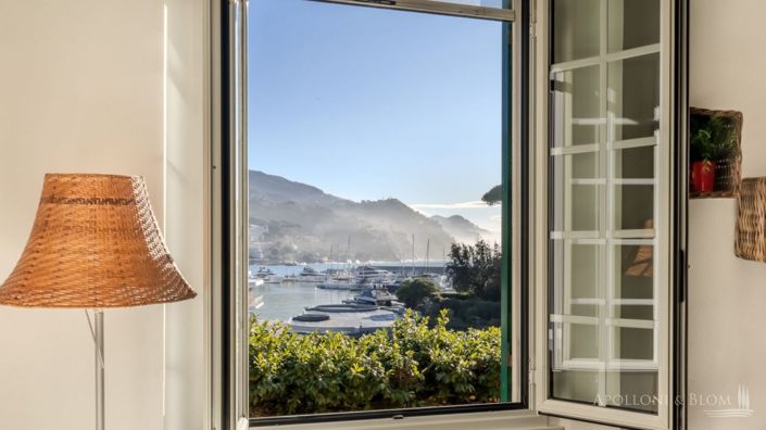 On the second floor of a classic Riviera villa surrounded by a green park, sea front location, for sale facing the Port of Rapallo. Overlooking the harbour of Rapallo, this elegant sea-front apartment enjoys a privileged position directly facing the port and the open Ligurian horizon. Set within an exclusive residential enclave composed of refined Riviera villas surrounded by a mature private park, the property offers tranquillity, security and immediate proximity to the waterfront and town centre. Accessed through an electric gate and nestled within a well-maintained condominium garden with caretaker’s lodge, the residence forms part of the first villa within the compound. The apartment is located on the second floor, reached via broad and comfortable stairs, and extends to approximately 115 sq m (1,237 sq ft). Its elevated position allows natural light to flood the interiors while framing uninterrupted views across the marina and the sea beyond. The entrance opens onto a bright living room distinguished by two generous windows and a balcony facing the port, creating a natural panorama of the harbour and coastline. A discreetly integrated kitchenette is carefully arranged off the living room. The master bedroom is spacious and luminous, featuring an en-suite bathroom and access to a second balcony overlooking the greenery of the park. Adjacent are two further bedrooms: a well-proportioned double bedroom and a third room suitable as a single bedroom, study or home office. A second bathroom completes the internal layout. Despite its central location just steps from the port, shops and waterfront promenade, the apartment remains immersed in the calm atmosphere of the private park that surrounds the villas. The landscaped grounds provide a natural extension of the home, offering residents shaded areas beneath mature trees where one may relax, read or simply enjoy the quiet greenery. The property is completed by a spacious cellar at ground level and a reserved outdoor parking space within the compound, a valuable feature in the port district of Rapallo. Positioned between the sea and the gardens, the apartment offers a refined Riviera residence where maritime views, privacy and everyday convenience come together in a setting of understated elegance. PROPERTY Ref: RAP3586Location: Rapallo, Province: Genova, Region: Liguria Type: 115 sq m/1237 sq ft sea-front 3-bedroom apartment on the second floor of a Riviera villa within a luxury residential compound with condo park, private parking and basement cellarConditions: excellentTerrace/Balcony: 2 balconiesParking: outdoor parking facility with 1 reserved car-seatLayout: Second Floor: living room with balcony, kitchenette, 1 double bedroom with en-suite bathroom and a balcony, 2 bedrooms, 1 bathroomDistance from services: on footDistance from main airports: Genoa 40kmUtilities: Fixed telephone network: available; Internet: available; Heating: methane; Water: mains city supply; Electricity: available; Water waste: mains city connectionEnergy Efficiency Rating: GApolloni & Blom RE conducts technical due diligence with the owner's technician to have a full report on each property's urban and cadastral state of the art. The due diligence may be requested by clients showing a strong interest in the property