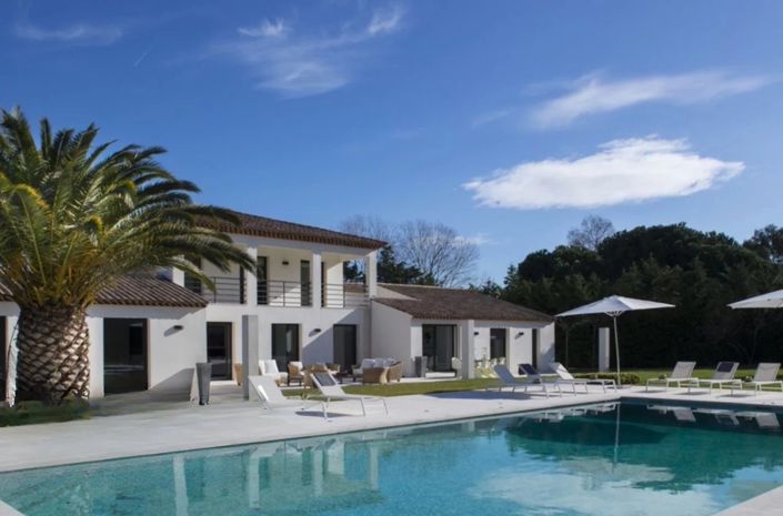 Set on a beautifully landscaped 3,800 m² plot, it features bright living spaces, five en-suite bedrooms, a master suite with private terrace, and a professional kitchen opening onto a large sun-drenched terrace.